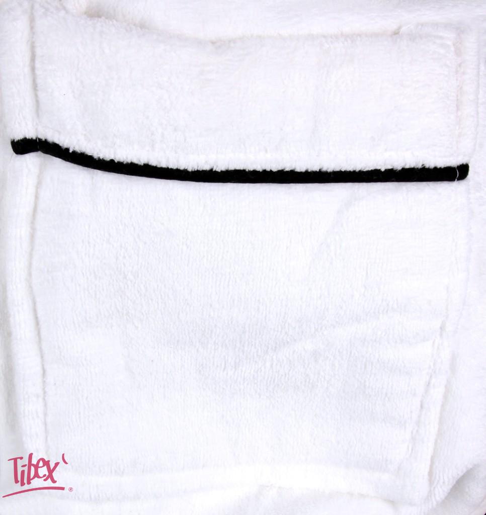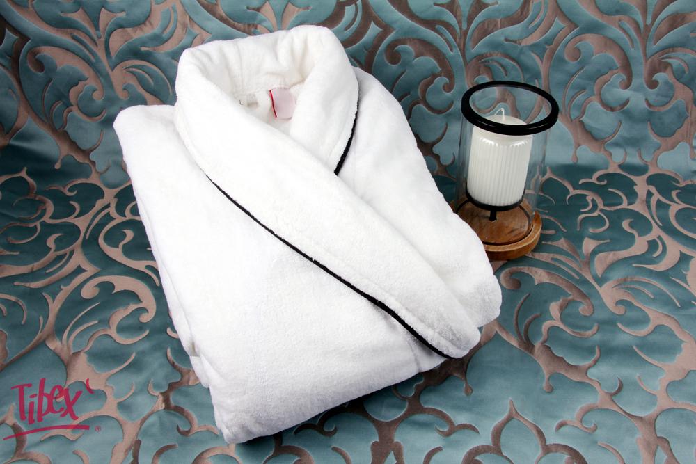 Župan Girasol se díky šálovému límci, složení a zdobení černou výpustkou stává luxusním doplňkem domácnosti i hotelových koupelen. Svým provedením je vhodný pro muže i ženy, standrdně vyrábíme ve třech velikostech a bílé barvě. Má dvě kapsy, pásek a praktické poutko na zavěšení. Produkt můžeme opatřit výšivkou dle vašeho přání.